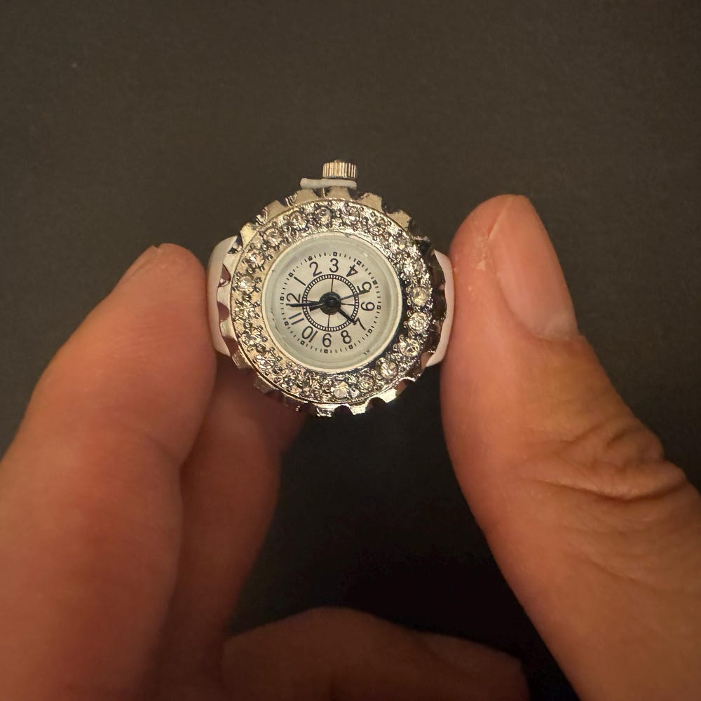 Vintage Style Elegant Silver Women’s Watch Ring, Adjustable Sparkling Timepiece, Unique Handmade Jewelry Gift, Fashion Accessory-White color